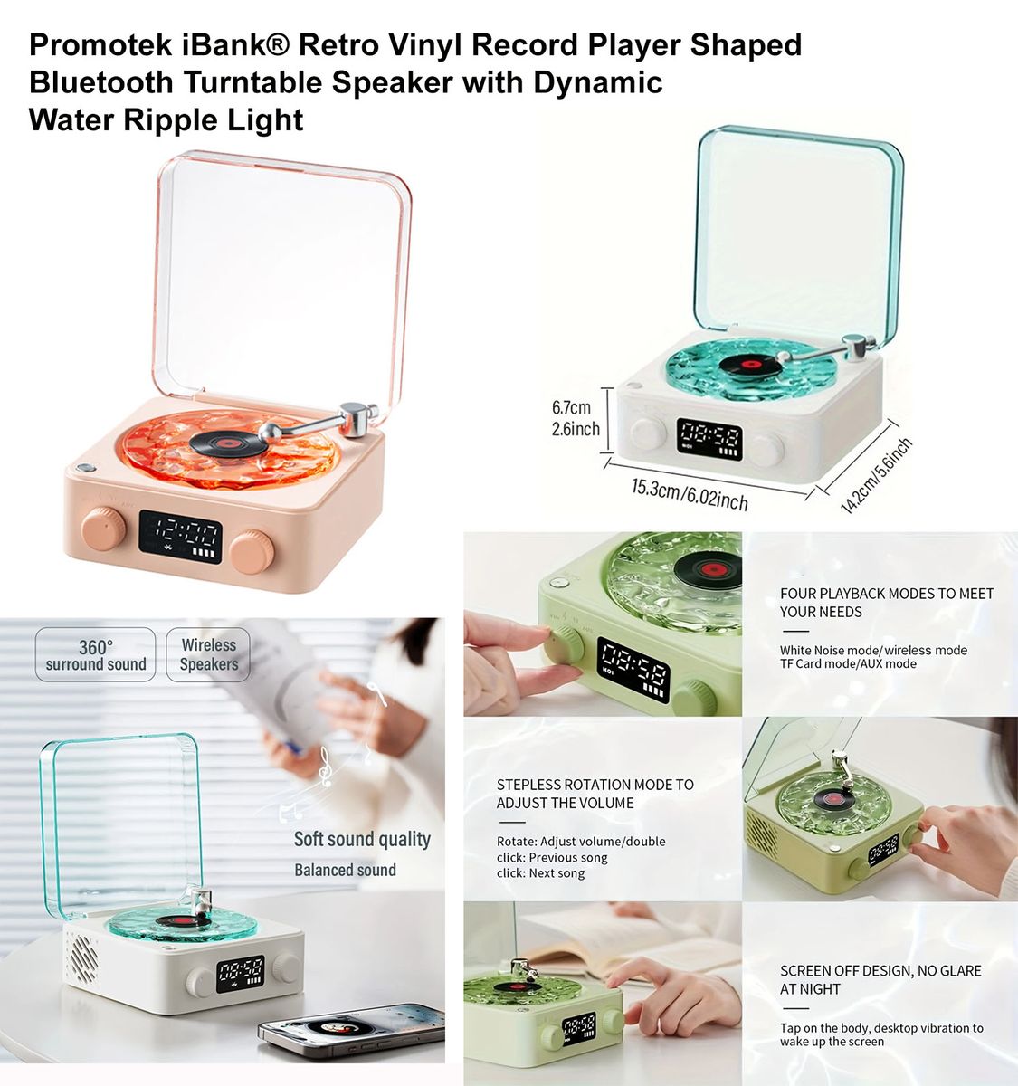 Promotek iBank® Retro Vinyl Record Player Shaped Bluetooth Turntable Speaker